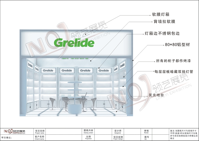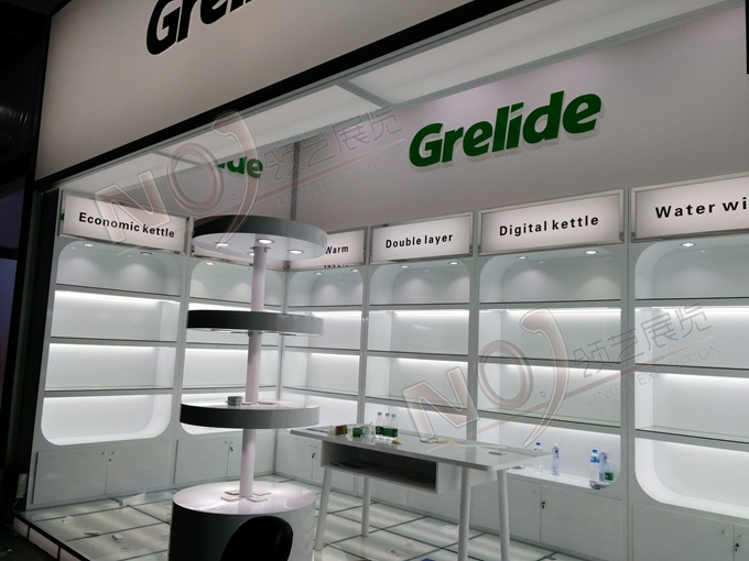 契合格來德的品牌形象和產(chǎn)品特性,采用框型結(jié)構(gòu),再搭配燈具燈光的效果,襯托出展位自由、簡(jiǎn)約的氛圍,突出一種現(xiàn)代、舒適的時(shí)尚品味。