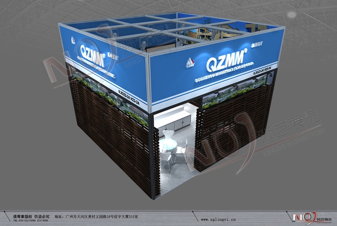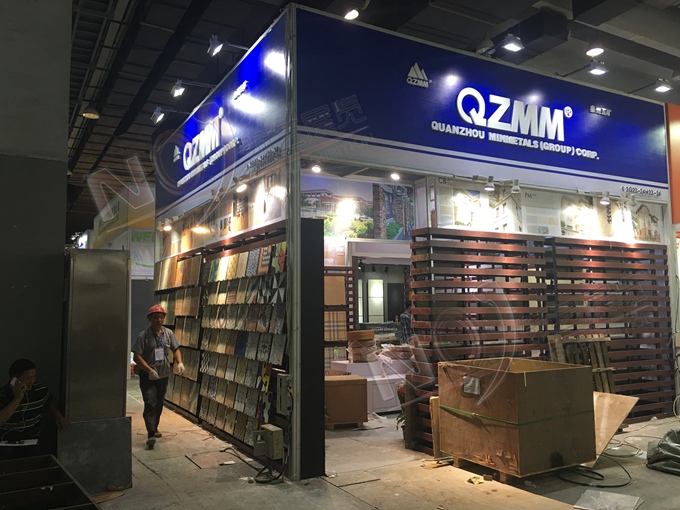 契合泉州五礦集團(tuán)的品牌形象和產(chǎn)品特性,采用矩形結(jié)構(gòu),再搭配燈具燈光的效果,襯托出展位高端、時(shí)尚的氛圍,突出一種現(xiàn)代、大氣的時(shí)尚品味。