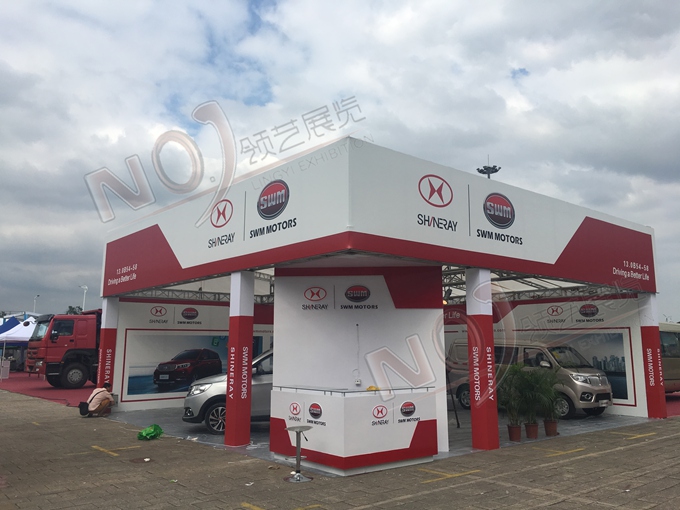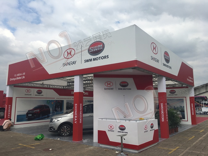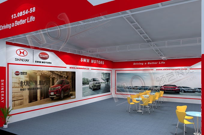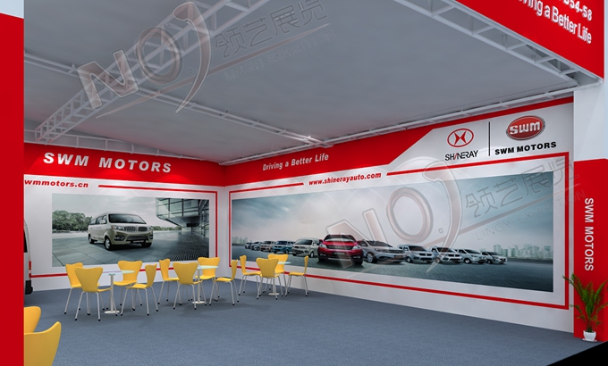 契合鑫源摩托的品牌形象和產品特性,采用矩形結構,再搭配燈具燈光的效果,襯托出展位簡約、時尚的氛圍,突出一種現(xiàn)代、簡約的時尚品味。