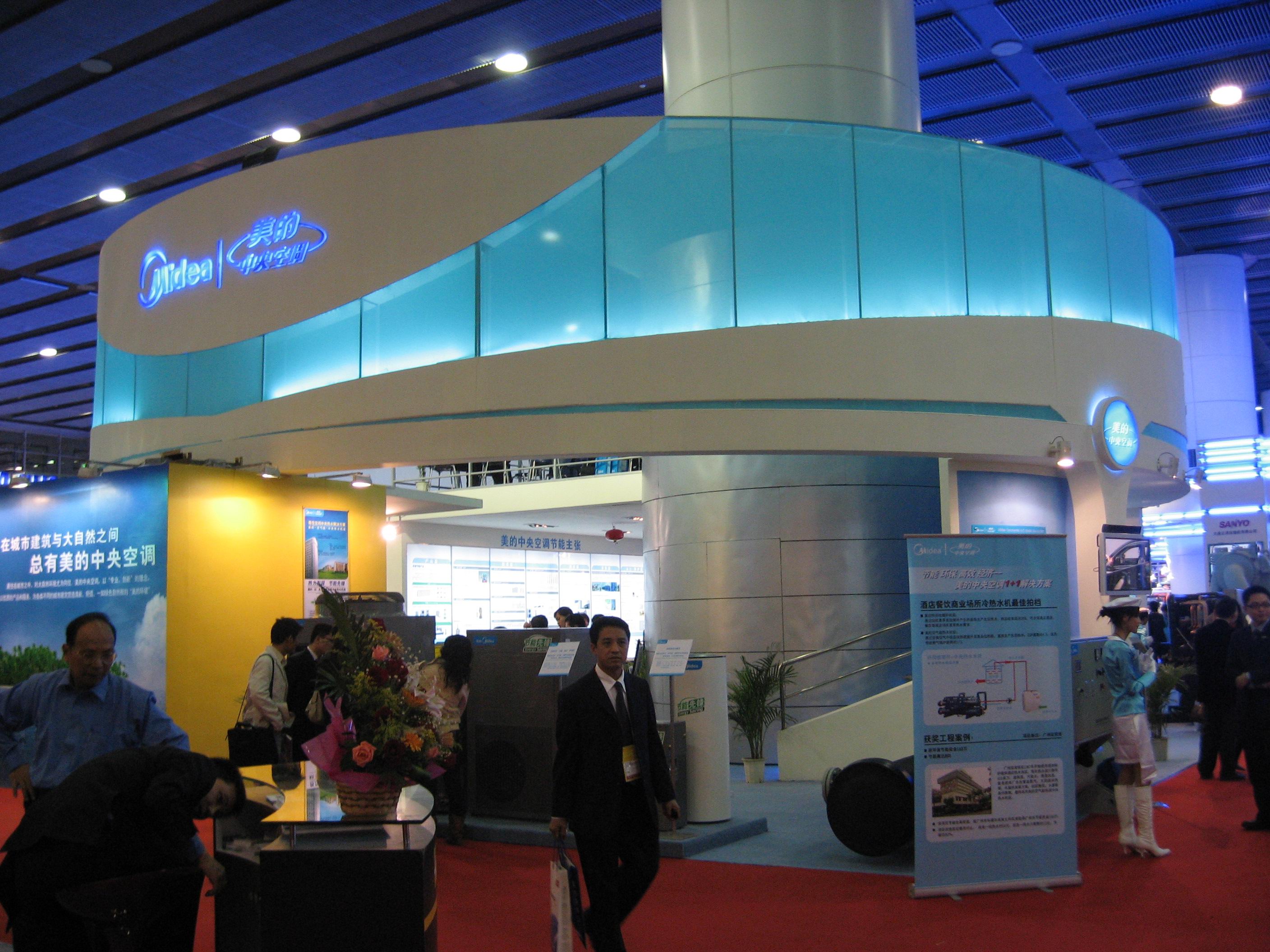 契合美的的品牌形象和產(chǎn)品特性,采用矩形結(jié)構(gòu),再搭配燈具燈光的效果,襯托出展位高端、時(shí)尚的氛圍,突出一種現(xiàn)代、大氣的時(shí)尚品味。