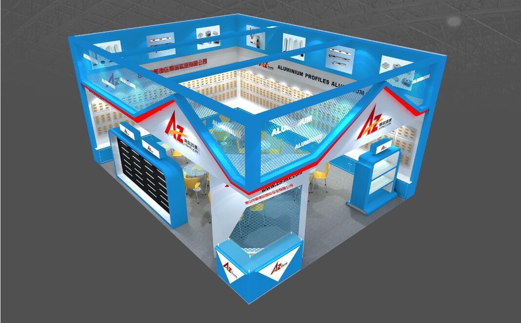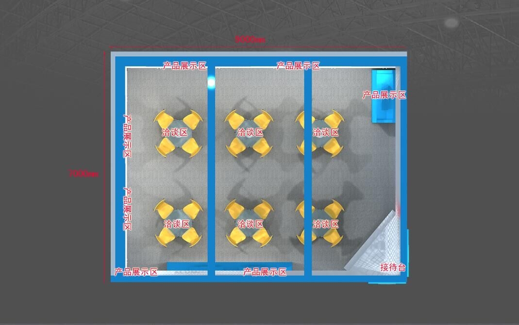 巧妙的運用藍色作主色搭配紅色,著重突出品牌和產(chǎn)品的展示,使整個使整個展位簡潔大方又高端大氣。
