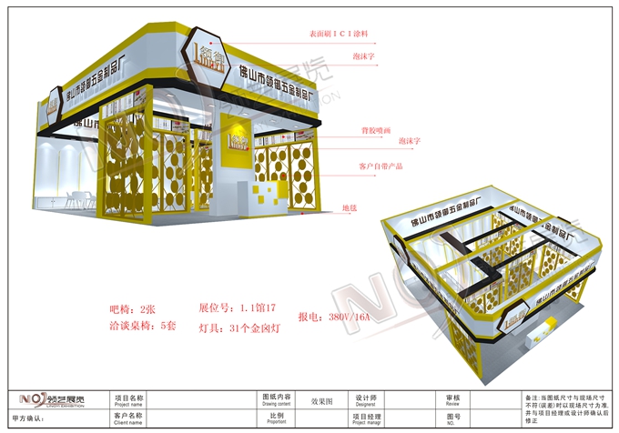 契合領御五金的品牌形象和產品特性,采用矩形結構,再搭配燈具燈光的效果,襯托出展位自由、創(chuàng)新的氛圍,突出一種現代、時尚的時尚品味。