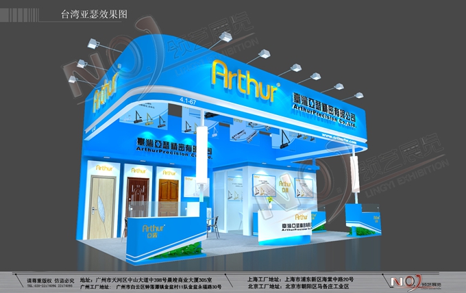 契合亞瑟公司的品牌形象和產(chǎn)品特性,采用立體結(jié)構(gòu),再搭配燈具燈光的效果,襯托出展位簡(jiǎn)約、方便的氛圍,突出一種精致、高端的時(shí)尚品味。