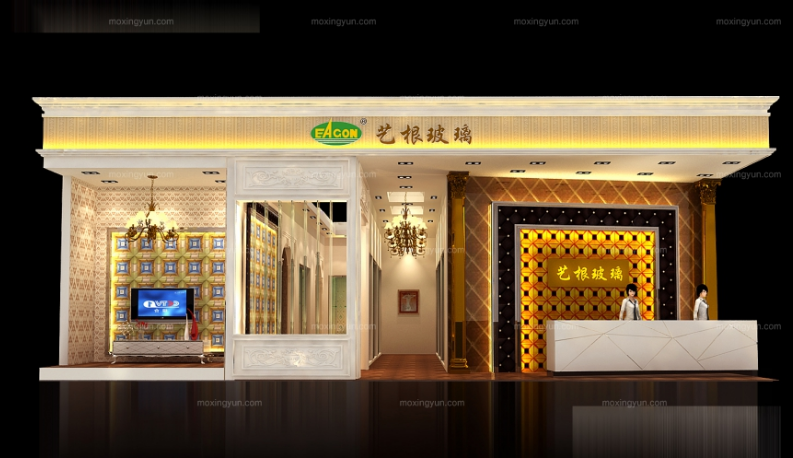 契合藝根玻璃的品牌形象和產(chǎn)品特性,采用線條、結(jié)構(gòu),再搭配燈具燈光的效果,襯托出展位簡約、時尚的氛圍,突出一種現(xiàn)代、高端的品味。
