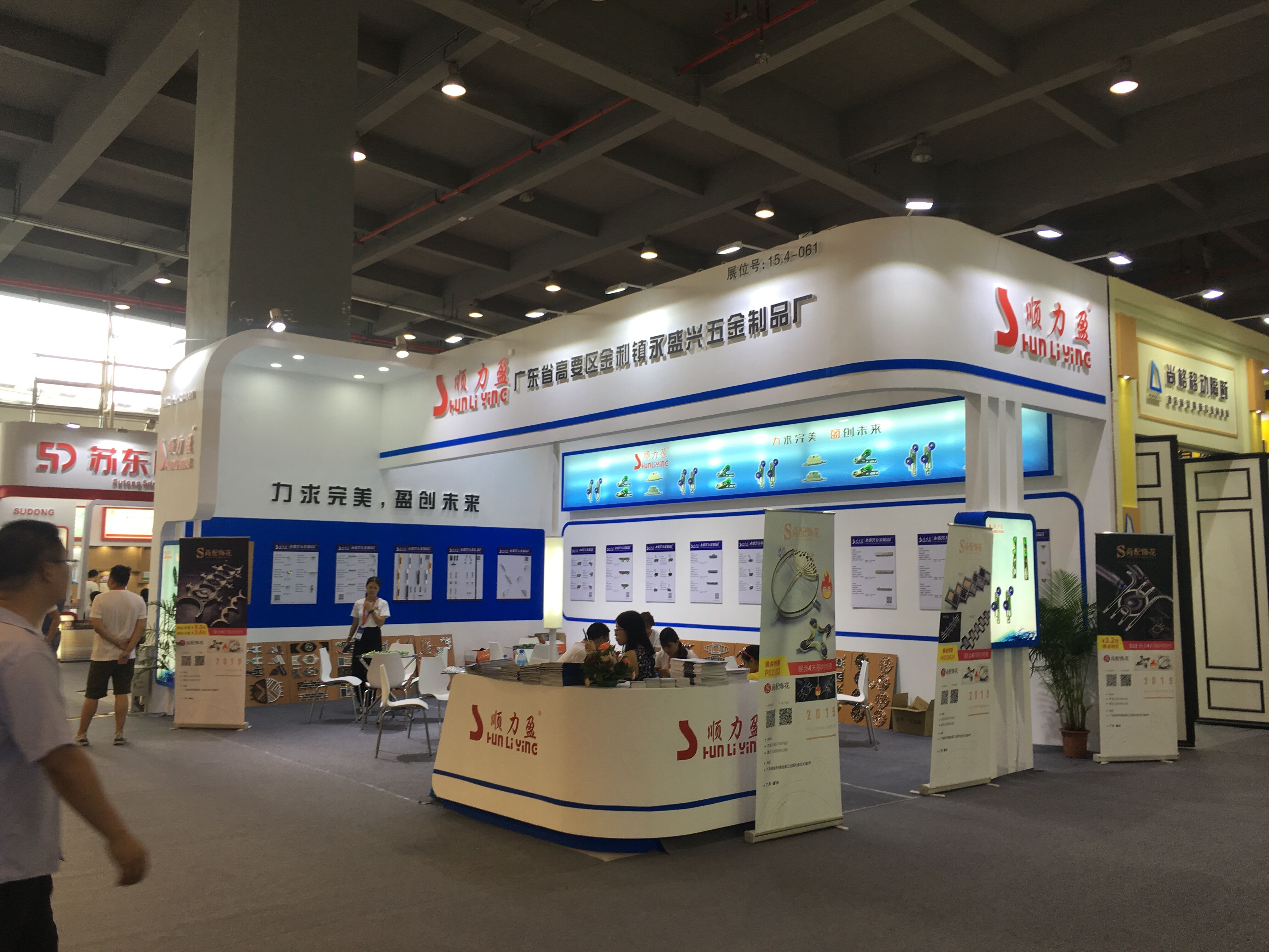 契合永盛興的品牌形象和產(chǎn)品特性,采用開放型結(jié)構(gòu),再搭配燈具燈光的效果,襯托出展位大氣、豪華的氛圍,突出一種簡約、時尚的品味。