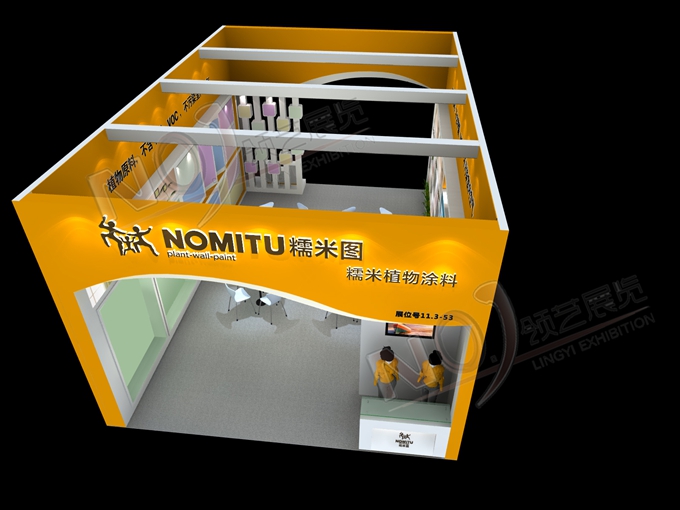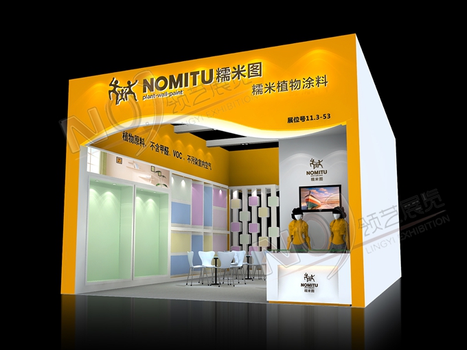 契合的糯米圖品牌形象和產(chǎn)品特性,采用矩形結(jié)構(gòu),再搭配燈具燈光的效果,襯托出展位時(shí)尚、簡(jiǎn)約的氛圍,突出一種青春、活力的時(shí)尚品味。