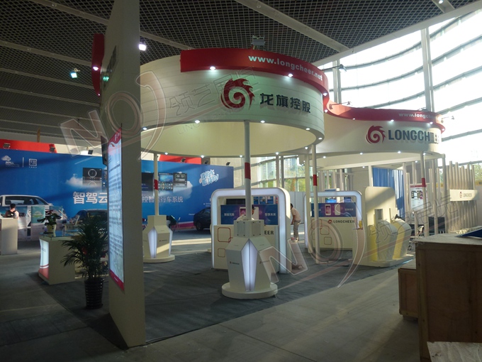 契合龍旗控股的品牌形象和產(chǎn)品特性,采用弧形、框型結(jié)構(gòu),再搭配燈具燈光的效果,襯托出展位超前、簡約的氛圍,突出一種融合、個(gè)性的時(shí)尚品味。