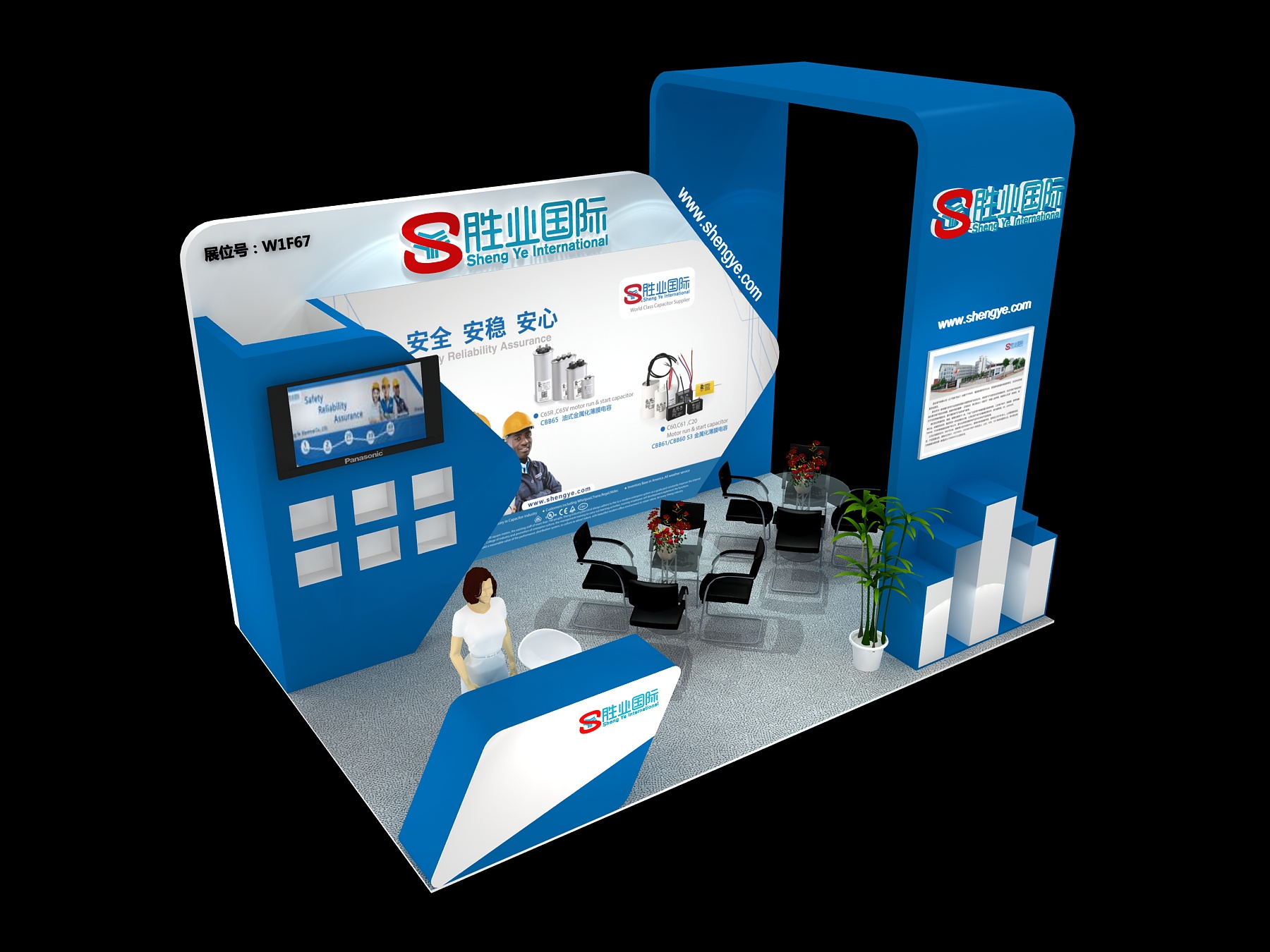 契合勝業(yè)的品牌形象和產(chǎn)品特性,采用開放式的造型,再搭配燈具燈光的效果,襯托出展位現(xiàn)代、清新氛圍,突出一種現(xiàn)代、高端的時尚品味。
