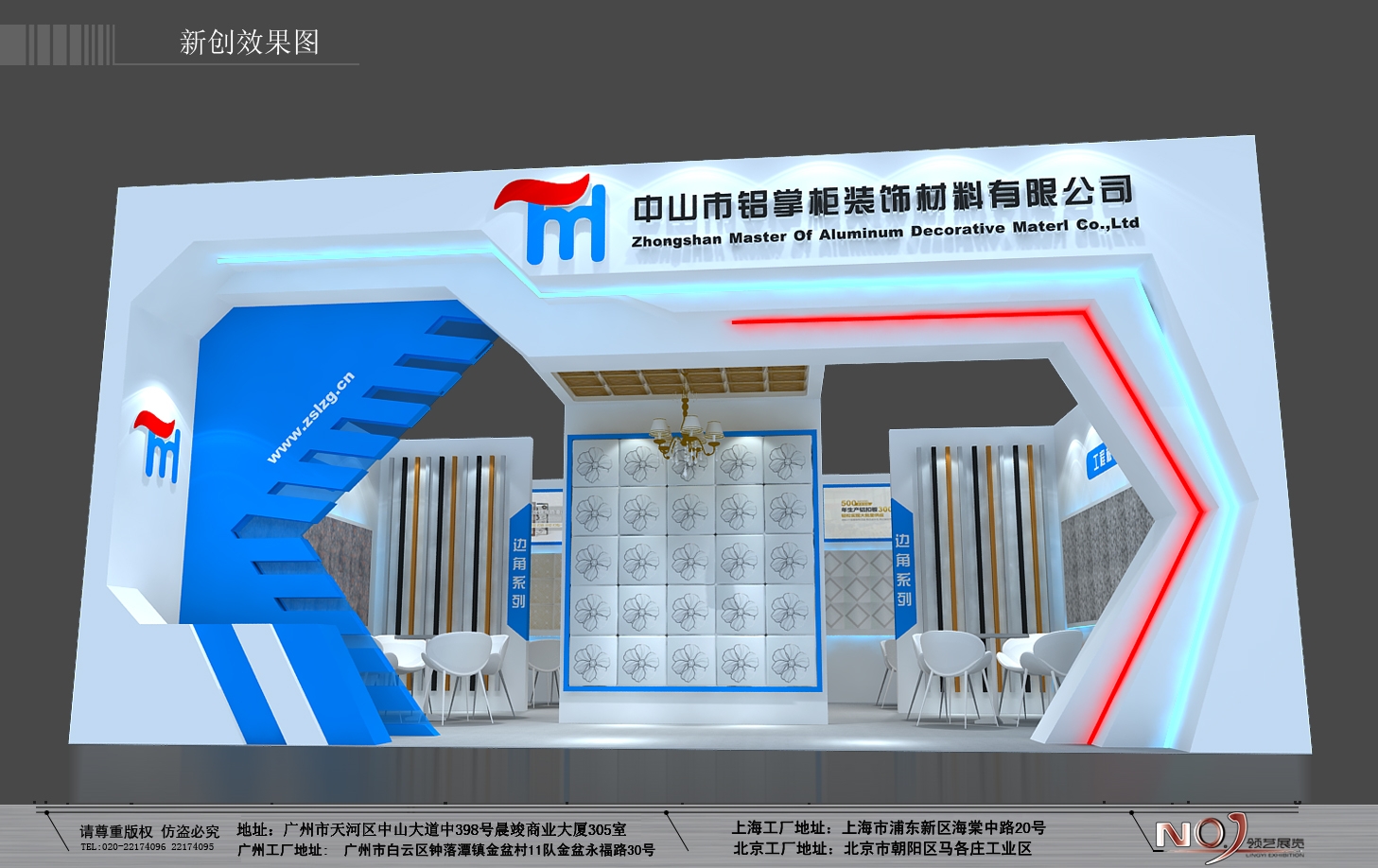 (3)輔助功能 輔助區(qū)域包括休息室、儲藏室等。好的展覽設計不僅要 “好看”,還要 “好用”,要有助于展臺人員開展工作,有助于展出達到目的。