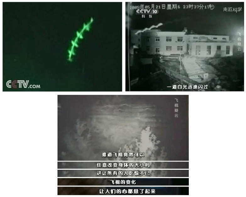 有個(gè)小區(qū)的攝像頭連續(xù)多次捕捉到一條發(fā)光的不明飛行物;這條飛行物的飛行時(shí)速相當(dāng)之快,像一道白光一閃而過。節(jié)目組還舉例了其他國家發(fā)生過的類似的怪異事件,表示“飛棍”出現(xiàn)的時(shí)間地點(diǎn)全無規(guī)律可循,十分之玄乎。