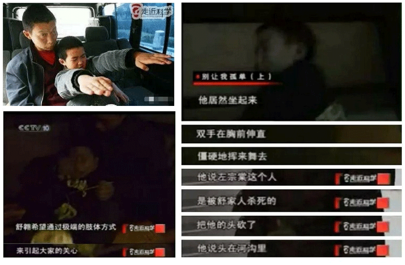 有個(gè)男孩經(jīng)常做出各種奇怪的動(dòng)作,比如翻白眼、咬人、胳膊伸直雙腿向前跳,還想喝血。他還說自己是左宗棠,被舒家人殺死,頭被砍掉扔到河里……