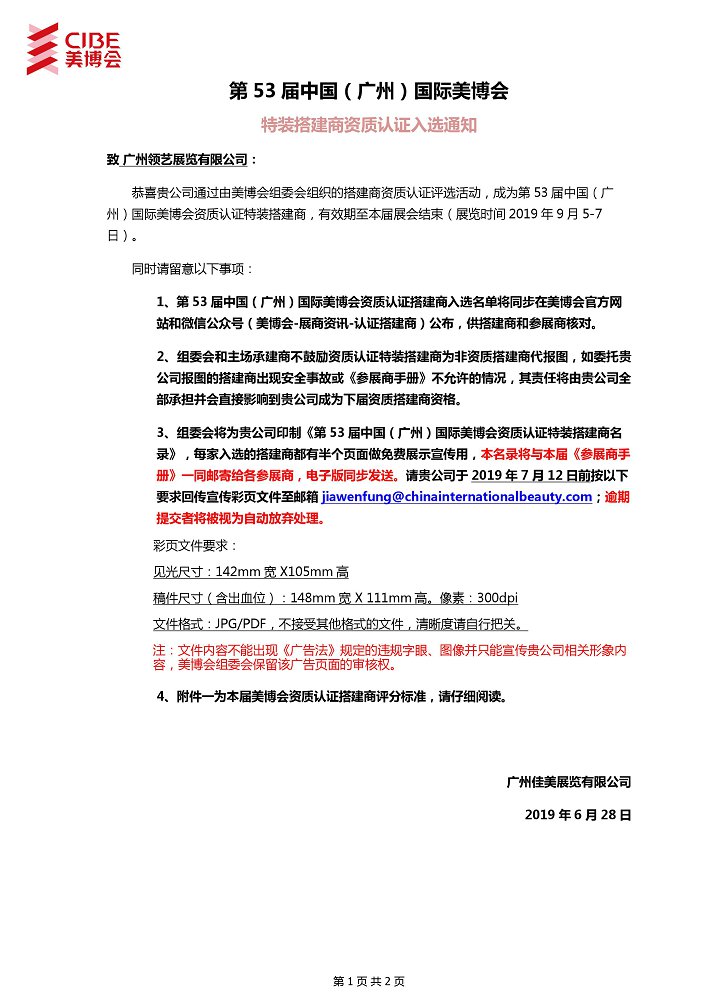 近日,廣州領(lǐng)藝展覽經(jīng)過激烈角逐,在全國會展公司中脫穎而出,喜獲53屆中國(廣州)美博會認(rèn)證特裝搭建資質(zhì)證書。領(lǐng)藝展覽是專業(yè)的展臺設(shè)計搭建公司,擁有豐富的展臺設(shè)計、搭建、運(yùn)營及維護(hù)經(jīng)驗,專注布展15年經(jīng)驗。至今已經(jīng)服務(wù)超過千家企業(yè),致力于成為參展企業(yè)有價值的合作伙伴和有競爭力的品牌服務(wù)商;已經(jīng)成為參加美博會美博會的參展企業(yè)首選展臺設(shè)計搭建商,歡迎新老客戶前來咨詢洽談。咨詢電話:13711456636 微信同號。更多詳情請瀏覽我司官方網(wǎng)站:www.ershouche6.com