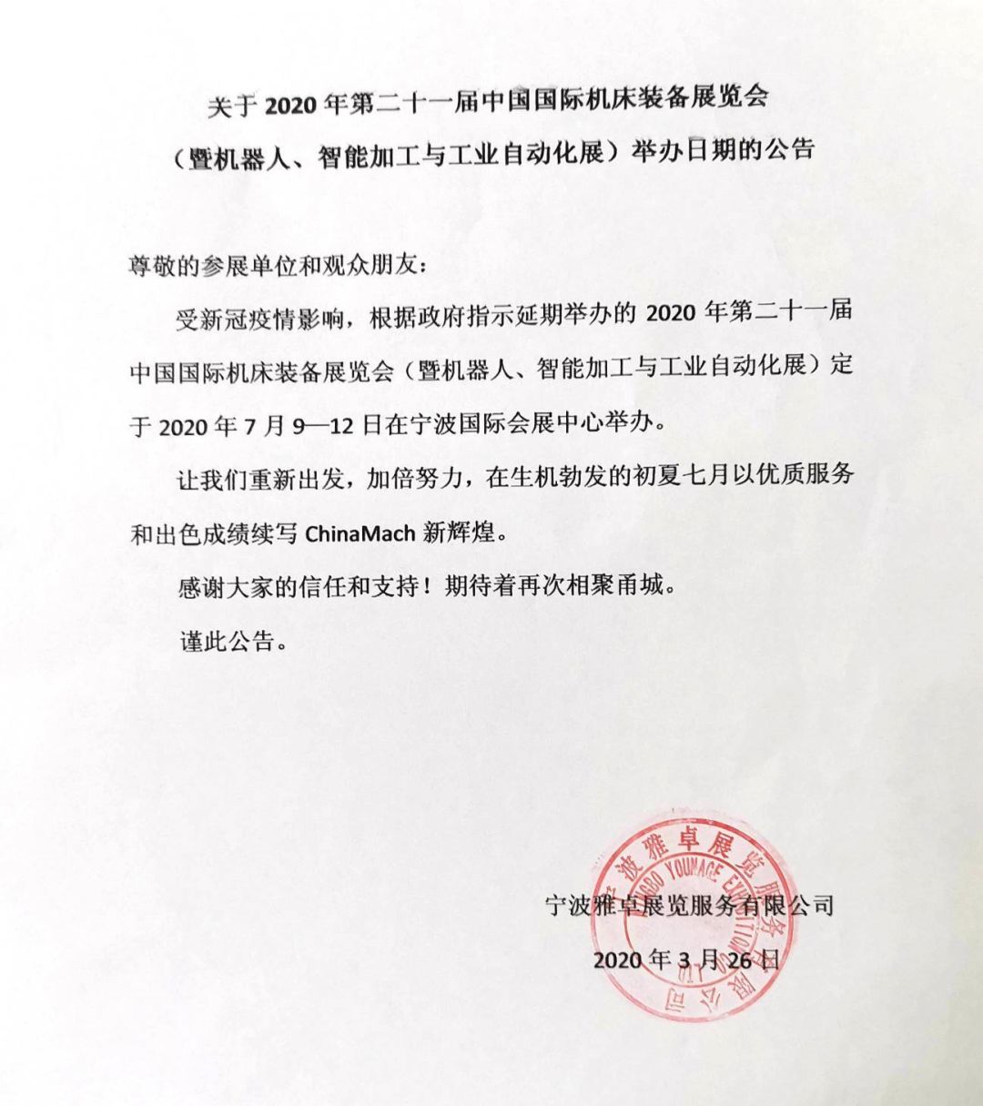 CIMES2020第十五屆中國國際機(jī)床工具展覽會將延期舉辦