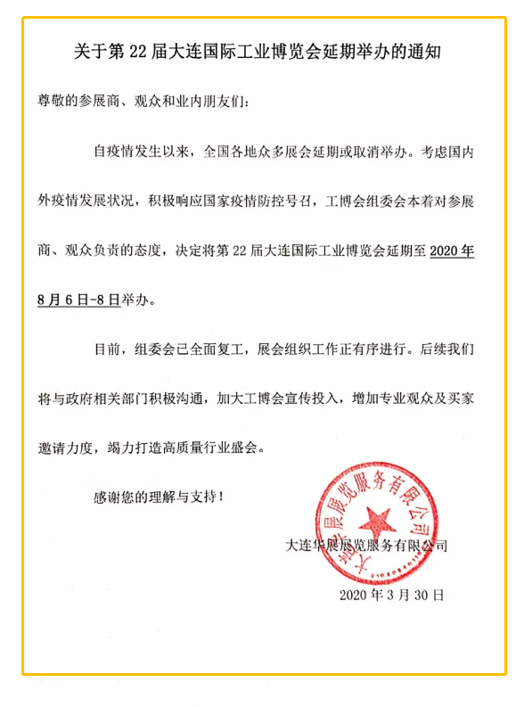 根據(jù)工博會(huì)設(shè)計(jì)搭建公司領(lǐng)藝展覽了解到,受疫情影響,第22屆大連國際工業(yè)博覽會(huì)延期舉辦,時(shí)間確定為2020年8月6日 —8日。如需工博會(huì)設(shè)計(jì)請聯(lián)系領(lǐng)藝展覽,希望我們能在工博會(huì)搭建上為您添磚加瓦,祝各位朋友收獲多多,滿載而歸!