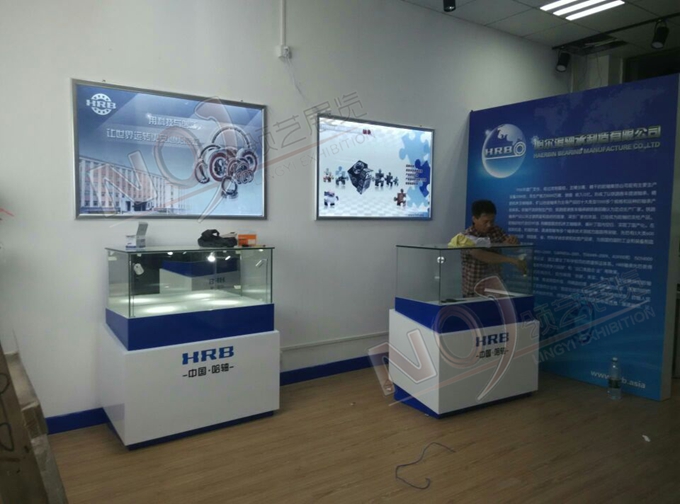 契合的哈軸品牌形象和產(chǎn)品特性,采用矩形結(jié)構(gòu),再搭配燈具燈光的效果,襯托出展位高端、時尚的氛圍,突出一種現(xiàn)代、歐美的時尚品味。