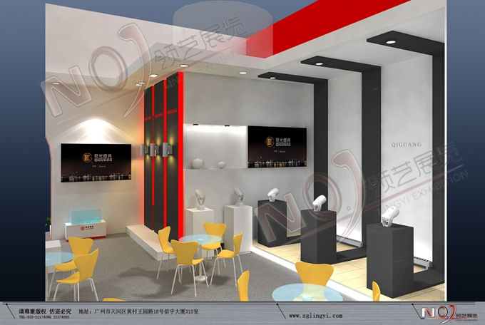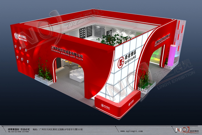 契合奇光的品牌形象和產(chǎn)品特性,采用矩形結(jié)構(gòu),再搭配燈具燈光的效果,襯托出展位時尚、簡約的氛圍,突出一種現(xiàn)代、活力的時尚品味。